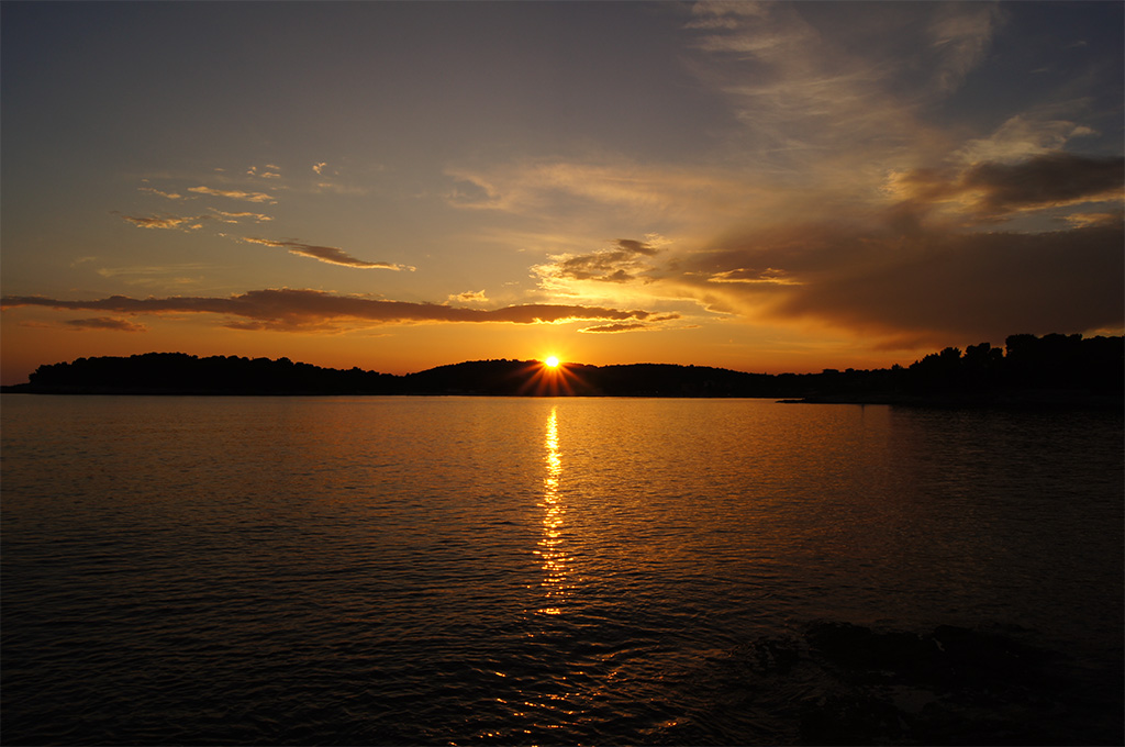 04:13 Uhr Abfahrt in der Schweiz. Lange Reise mittels PKW mit nur einem kurzen Kaffeestopp nach Pula. Ca. 11:45 Uhr sind wir dann in unserem reservierten Apartment angekommen. Typisch kroatisch wurden wir von der Familie sehr herzlich empfangen. Nach dieser Anreise hatten wir natürlich grossen Hunger, welchen wir in einem Restaurant in der Nähe mit gutem Essen auch stillten. Noch während dem Essen zog allerdings ein Gewitter (samt Hagel) auf, welches nach ca. 20 Minuten aber glücklicherweise schon wieder vorüber war. Anschliessend wollten wir natürlich endlich das Meer sehen, welches nur 2 Minuten vom Apartment entfernt und wunderschön klar war. Am Abend dann erste Eindrücke der Stadt gesammelt und den wunderschönen Sonnenuntergang genossen.